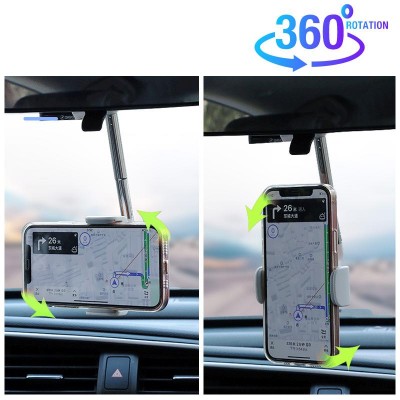 حامل هاتف السيارة مع جبل مرآة الرؤية الخلفية ، دوران 360 درجة