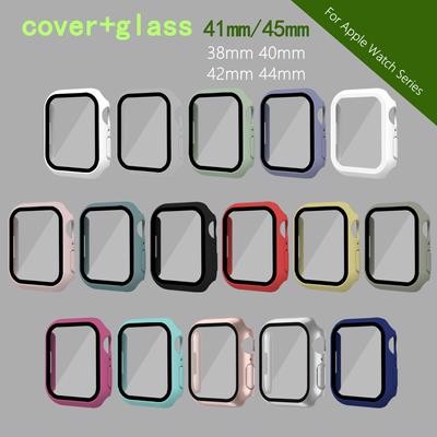 زجاج مقسى + حالة من سلسلة Apple Watch 7/6/5/4/3/2/1/SE 38MM 40 41 مم 42 44 مم 45 مم 45 مم