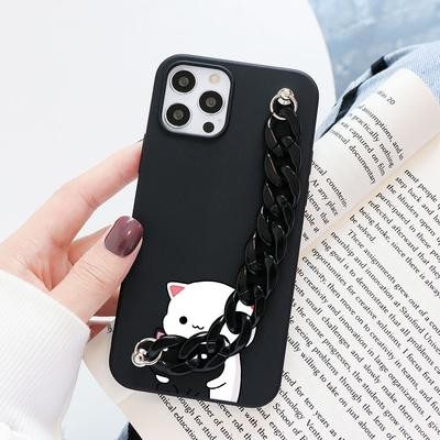 حالات هاتف Cat Cat مع سلسلة لـ iPhone 12 11 Pro 8 7 6 Plus 5 SE 2020 X XR XS Max