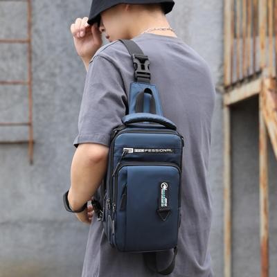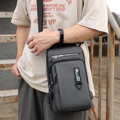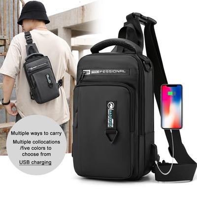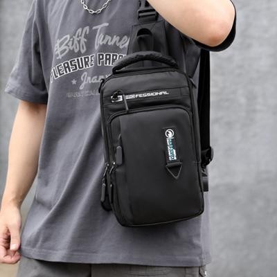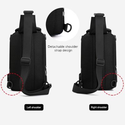 رجال نايلون مقاوم للماء حقيبة صدر USB صغير كروس سالينغ حقيبة ظهر واحد
