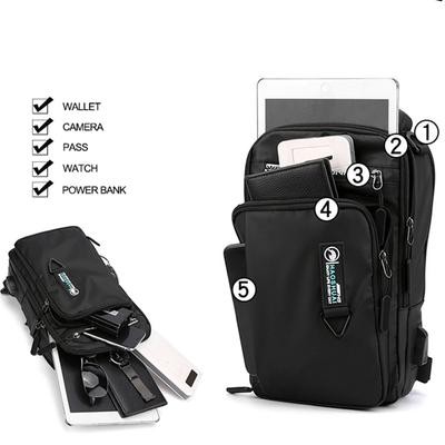 صفحة العنوان > الحقائب وحقائب السفر > رجال نايلون مقاوم للماء حقيبة صدر USB صغير كروس سالينغ حقيبة ظهر واحد