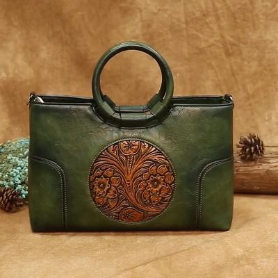 حقيبة نساء جلدية عالية الجودة من الجلد رجعية مصنوعة يدويًا أكياس كتف منقوشة