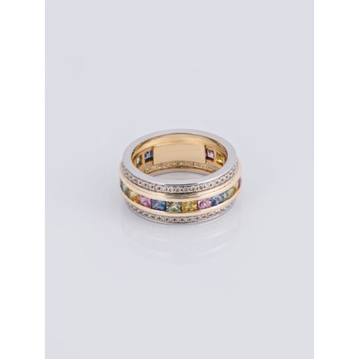 صفحة العنوان > مجوهرات > خاتم جاتاموفا الذهبي مع الماس والياقوت