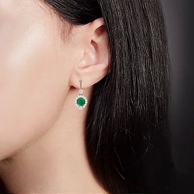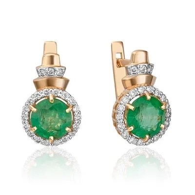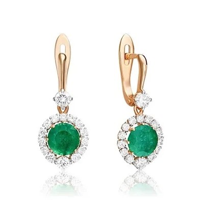 صفحة العنوان > مجوهرات > أقراط بلاتينا مع قفل إنجليزي مصنوع من 585 من الذهب الأحمر مع الزمرد والماس