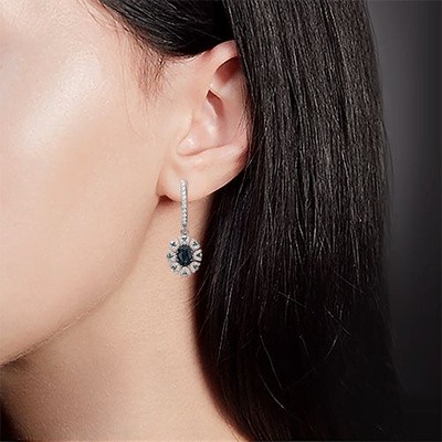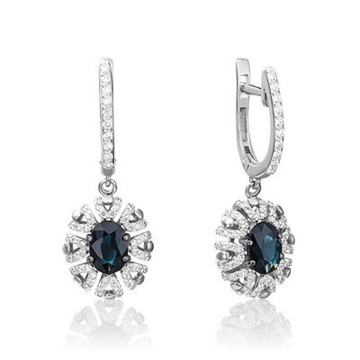 صفحة العنوان > مجوهرات > أقراط بلاتينا مع قفل إنجليزي مصنوع من 585 من الذهب الأبيض مع الياقوت والماس