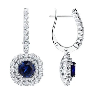 Sokolov Diamonds ، أقراط الذهب الأبيض مع الماس والياقوت ، 2021106-3 ، ديكور ، 585 ص.